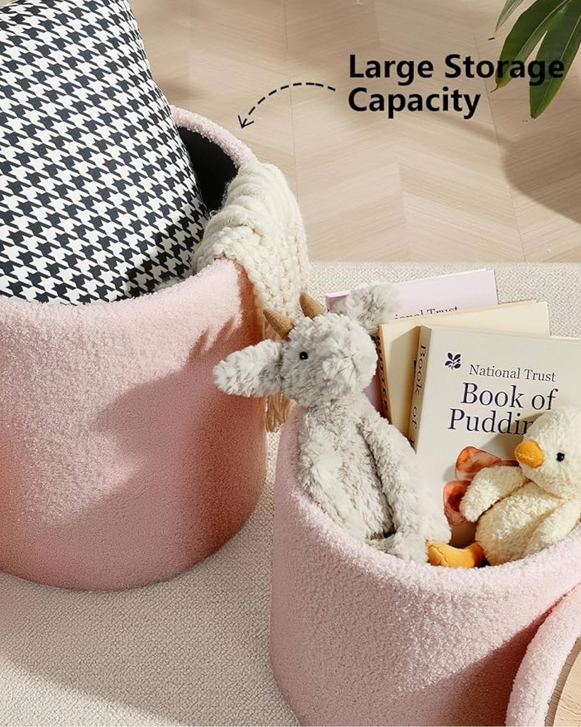 Beyond its sculptural beauty, the Élora Pouf offers discreet storage, effortlessly concealing throws, books, or everyday essentials with a touch of grace. Perfectly versatile, it transitions from an elegant footrest to a chic side table or extra seating when entertaining.