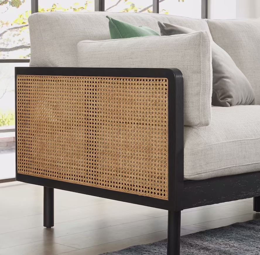 The Lucia Cane Sofa by Armori combines natural elegance, understated luxury, and effortless comfort. Crafted with a solid wood frame and natural cane detailing, and upholstered in a soft linen-blend fabric, this sofa brings a light, airy feel to any sophisticated living space. Its refined silhouette and subtle textures create a serene yet stylish centerpiece, perfect for upscale residences.