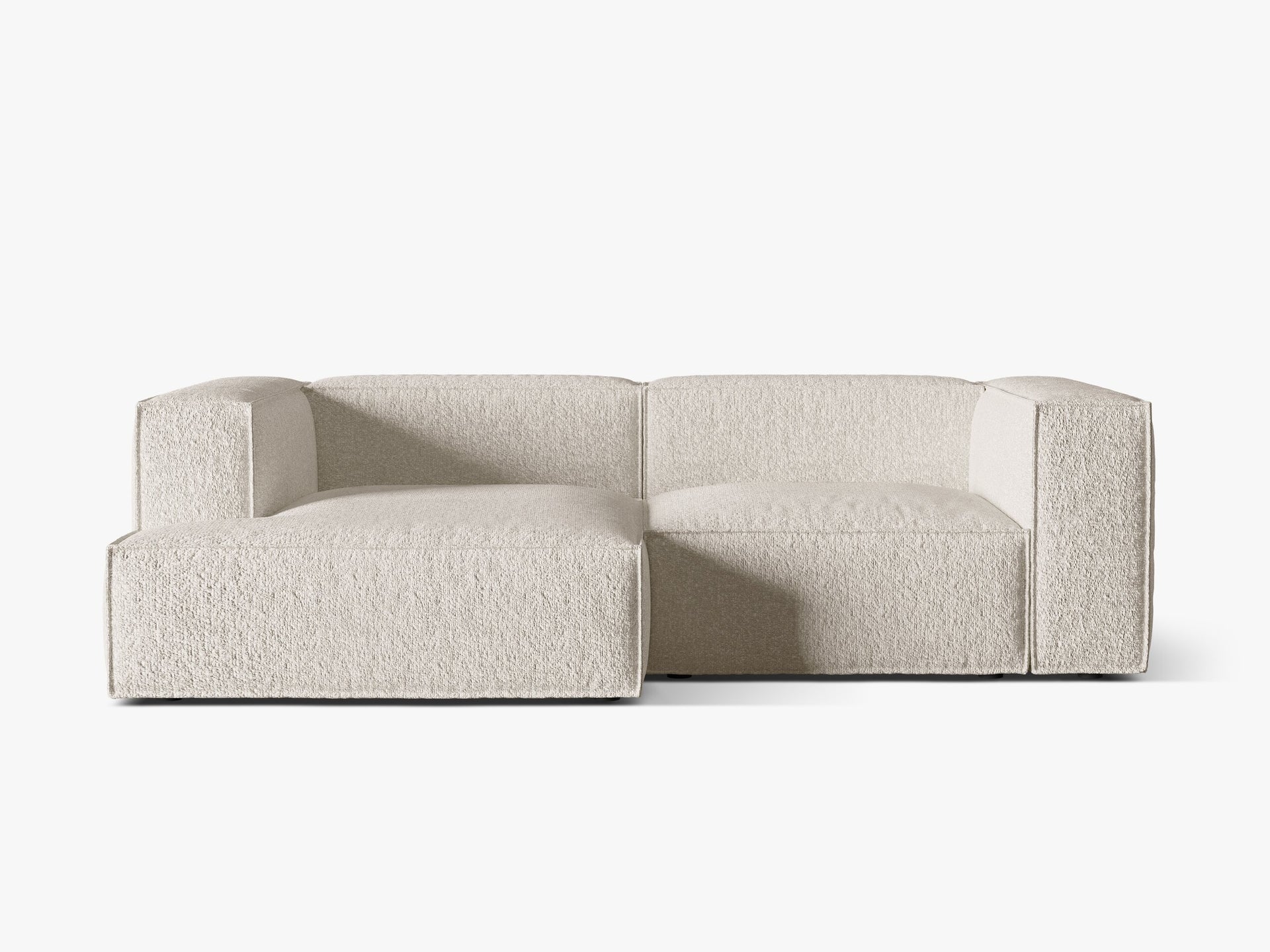 Upholstered in Bouclé “Monpea” Grey-Beige Mélange, the Nuria reveals a luxurious, tactile surface that enriches any interior. The soft looped weave invites touch, offering warmth and sophistication in equal measure. Its neutral tones complement both minimal and contemporary spaces.